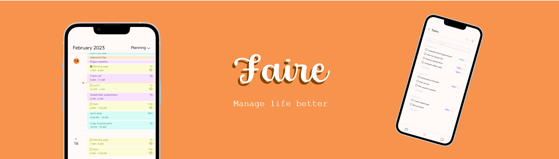 Current productivity apps usually focus on just one thing: calendars, to-do lists, grocery lists, notes, or some other singular vector of productivity. But we all have multiple vectors of productivity needs. As a result, we're left to rely on different apps for each purpose. Furthermore, most productivity and work management platforms are web-centric, with mobile experiences that are either challenging to navigate or overly simplified to the point of being impractical. However, for someone like me who is often on the go with just my phone, a robust mobile experience is essential. Faire perfectly fills this market gap - the single source for personal productivity management, optimized for mobile.